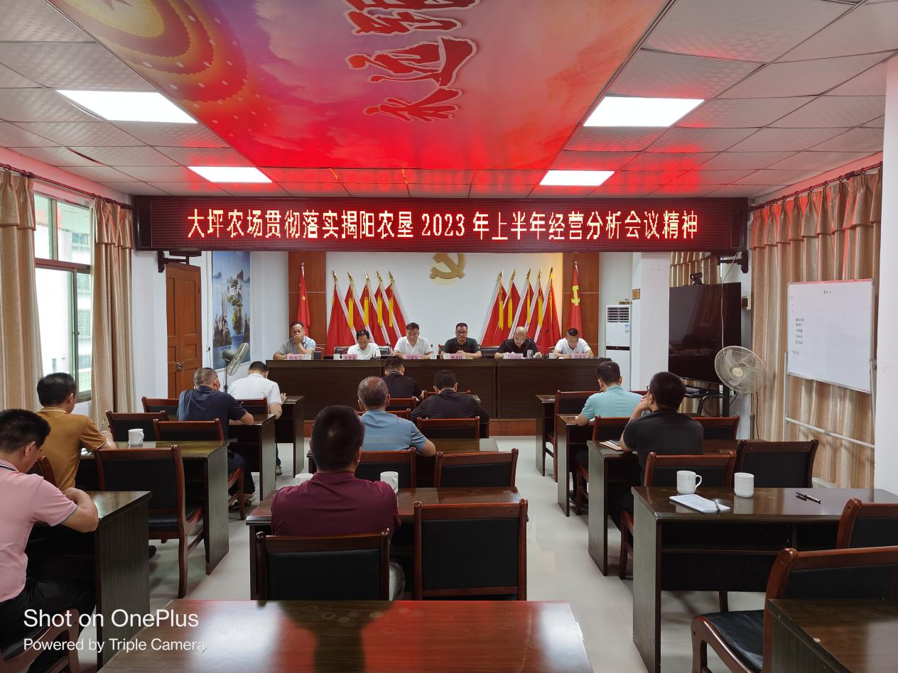 場(chǎng)黨委書(shū)記賴源旺傳達(dá)揭陽(yáng)農(nóng)墾2023年上半年經(jīng)營(yíng)分析會(huì)議精神。農(nóng)場(chǎng)各分管領(lǐng)導(dǎo)分別總結(jié)分管線條的階段工作情況,并部署下一階段工作計(jì)劃。