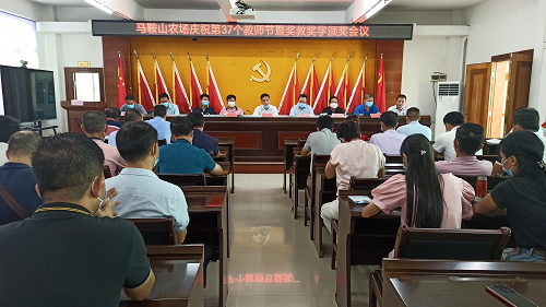 9月9日,馬鞍山農(nóng)場召開慶祝第37個(gè)教師節(jié)暨2020~2021學(xué)年度獎(jiǎng)教獎(jiǎng)學(xué)頒獎(jiǎng)會(huì)議。農(nóng)場黨政領(lǐng)導(dǎo)班子、各部門負(fù)責(zé)人、各村(居)、管區(qū)書記,鄉(xiāng)賢代表,教育組全體班子成員、各學(xué)校獲獎(jiǎng)師生代表等共40多人參加。會(huì)議由黨委委員、副場長陳榮勝主持。