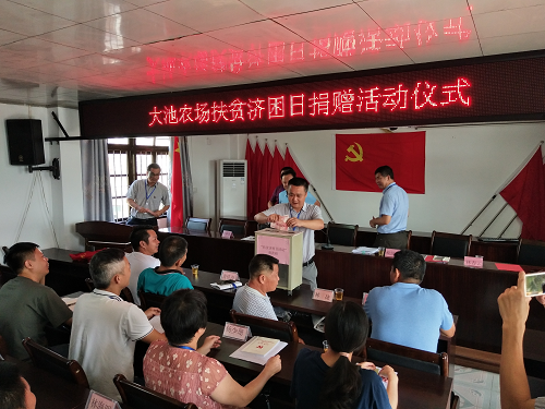 7月1日上午,大池農(nóng)場開展扶貧濟困日捐贈活動儀式,參加儀式人員有機關(guān)全體工作人員及各村(居)書記約50人,全體領(lǐng)導(dǎo)干部職工紛紛援手,為扶貧濟困出力。